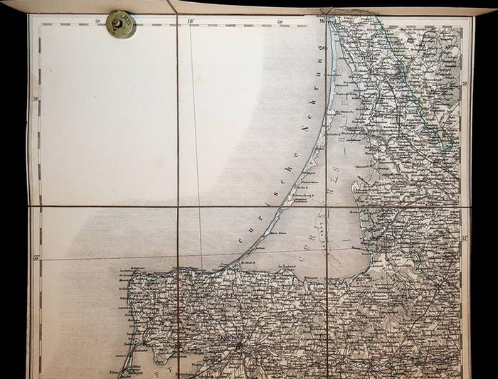 K?NIGSBERG - [Blatt L. 1 der General-Karte von Central Europa 1:300000 1873-1876] Wien, Kaiserlich und K?nigliches Milit?r-Geographisches Institut, 1874. Heliogravure in Kupfer vervielf?ltigt durch Umdruck vom Steine., Blatt ca. 51x 45 cm, Kartenbild; ca. 48 x 42 zu 6 Segmenten auf Leinen aufgezogen; Zustand: sehr gut, teilkoloriert. Generalkarte von Zentraleuropa / Generalcarte von Centraleuropa / 1:300 000 / 1 : 300. 000. Die Generalkarte von Central Europa erschien in den Jahren 1873 bis 1876, sie ist das Werk von Joseph Ritter von Scheda (1815-1888) Nach seiner milit?rischen Ausbildung in Graz, wurde recht bald seine besonderen F?higkeiten f?r das Kartenzeichnen erkannt. Ab 1842 begann seine steile Karriere beim Wiener Milit?rgeographischen Institut. Zun?chst Leiter der Lithographischen Abteilung des Wiener Milit?rgeographischen Instituts sp?ter zeitweise auch der Kupferstichabteilung. War er ab 1869 Chef der Abteilungen Topographie, Lithographie und Kupferstich somit der gesamte Bereich der kartographischen Arbeiten des Instituts. Sein unerm?dliches Bestreben um Verbesserung der technischen und inhaltlichen Qualit?t der Karten trug er wesentlich zur Begr?ndung des Weltrufs des Wiener Milit?rgeographischen Instituts bei. Der hier angebotenen Karte gingen folgende Arbeiten voraus: 1845-47 General-Karte von Europa in 25 Bl?ttern Lithographie, General-Karte des ?sterreich. Kaiserstaates mit einem grossen Theile der angr?nzenden L?nder 20 Blatt in Kupferstich 1: 576 000, in der 2. Auflage 1870-1871 General-Karte von Central-Europa in 47 Bl?ttern, wobei diese Kartenwerke nach eigenen Zeichnungen Schedas im Institut auf seine Kosten produziert wurden. Wegen der hervorragenden Qualit?t wurde konnte die 1 : 576 000 Karte auf dem Ma?stab 1 : 300 000 vergr??ert werden, wodurch mit einem Schlage 207 Bl?tter der Generalkarte vorlagen. Vgl. ADB 53, S. 737 f. / NDB, 22, S. 598 f. / ?BL 10, S. 56 f. / Die Amtliche Kartographie ?sterreichs Wien 1970, S. 28, dieses Kartenwerk blieb bis zu der Generalkarte von Mitteleuropa 1: 200 000 Wien, k. k. milit?rg. Inst 1889-1912 der Standard.